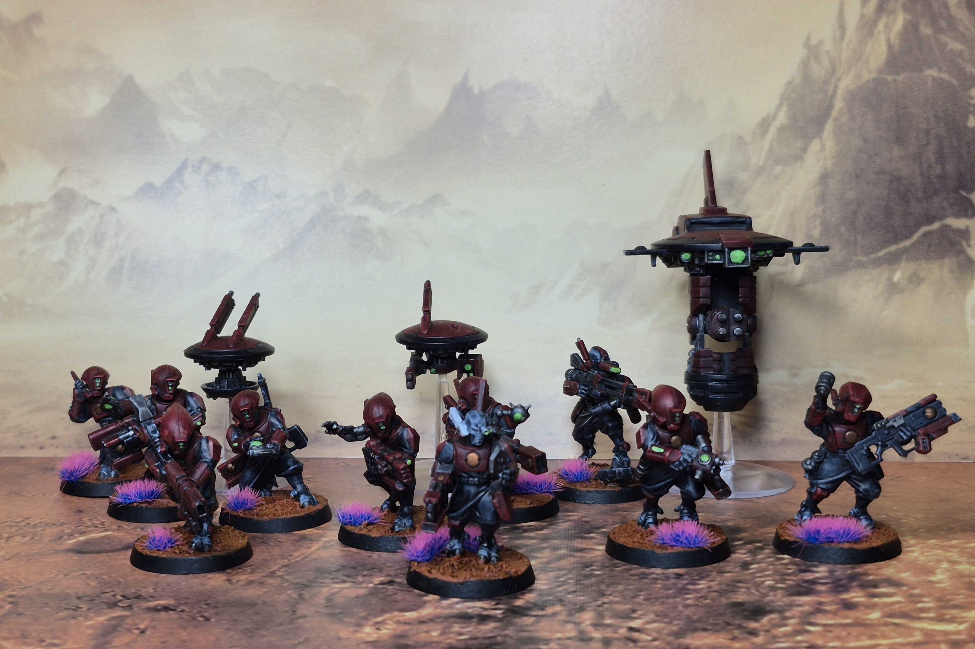 Today marks a big milestone for me, as I managed to finish another Kill Team. As you can see it's the Tau Pathfonders from the second box to come out for the previous edition of Kill Team. I decided to go for a Farsight Enclaves scheme, as it was the one that I liked most.